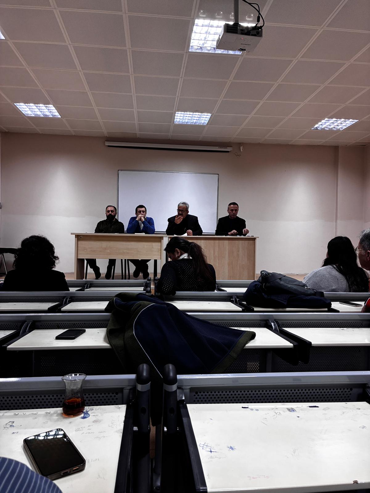 Fakültemiz Amfi salonunda, Dekanımız Prof. Dr. Mustafa Yağbasan başkanlığında gerçekleştirilen Akademik Kurul Toplantısına fakültemiz akademisyenleri, Fakülte Sekreteri Cemalettin Korkmaz ve üç bölümün öğrenci temsilcileri eşlik etti.